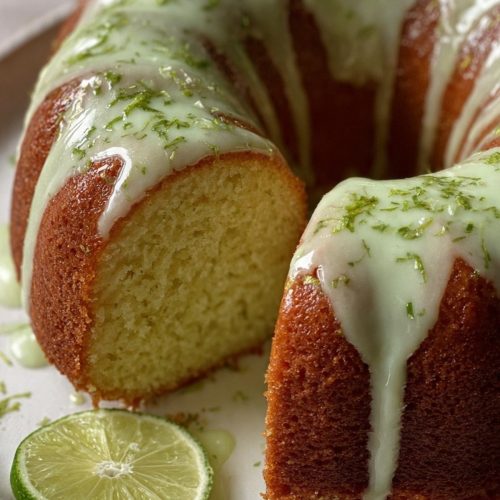 This cake is rich and moist, which makes it hold up well for a few days if stored properly. Because the glaze is cream-cheese based, keep the cake in an airtight container in the refrigerator. It will stay fresh for about 4 days. For the best texture, slice what you need and let it sit at room temperature for 15–20 minutes before serving, so the crumb softens slightly. If you’d like to make it ahead, you can bake the cake a day in advance, cool it completely, wrap it tightly, and refrigerate it unglazed. Add the key lime glaze a few hours before serving. To freeze, wrap slices individually and freeze for up to 2 months, then thaw overnight in the fridge. Always glaze after thawing for the cleanest look.