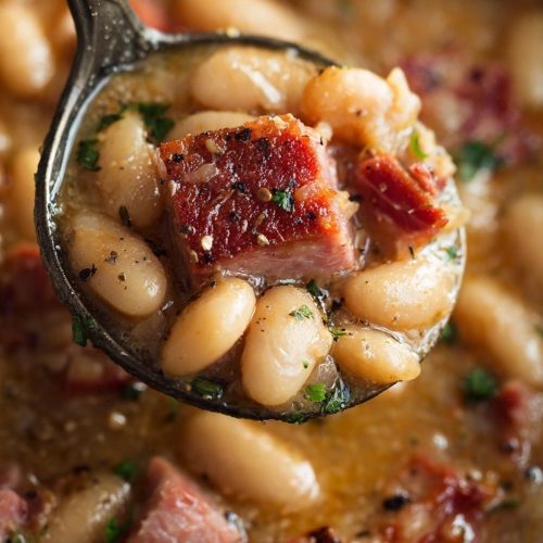 - Cook low and slow. Simmer uncovered for about 2 to 2 1/2 hours, stirring every 20–30 minutes to prevent sticking. Add a splash of extra broth or water if the liquid drops below the beans. They’re done when the beans are very tender and the broth has thickened into a silky, almost stew-like consistency.